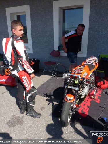 Devant la moto de Louis Rossi, le jeune pilote c’est Corantin Perolari, qui a roulé ce week-end sur la Transfiormer en CEV. Il est aussi devant sur la photo qui suit: très impressionnant ! Laurent en parlait comme un tout bon. Mais Louis Rossi comme Corantin n’ont pas résisté aux contraintes, légitimes, attendues par Laurent pour avancer dans cette discipline.