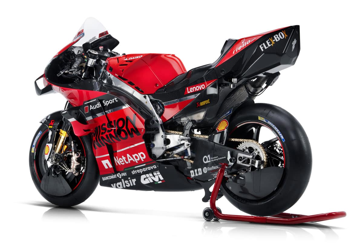 Du rouge toujours, bien sûr, mais davantage de noir et du chrome: telle est apparue la livrée des GP20 qu’à dévoilé Ducati hier soir à Bologne.