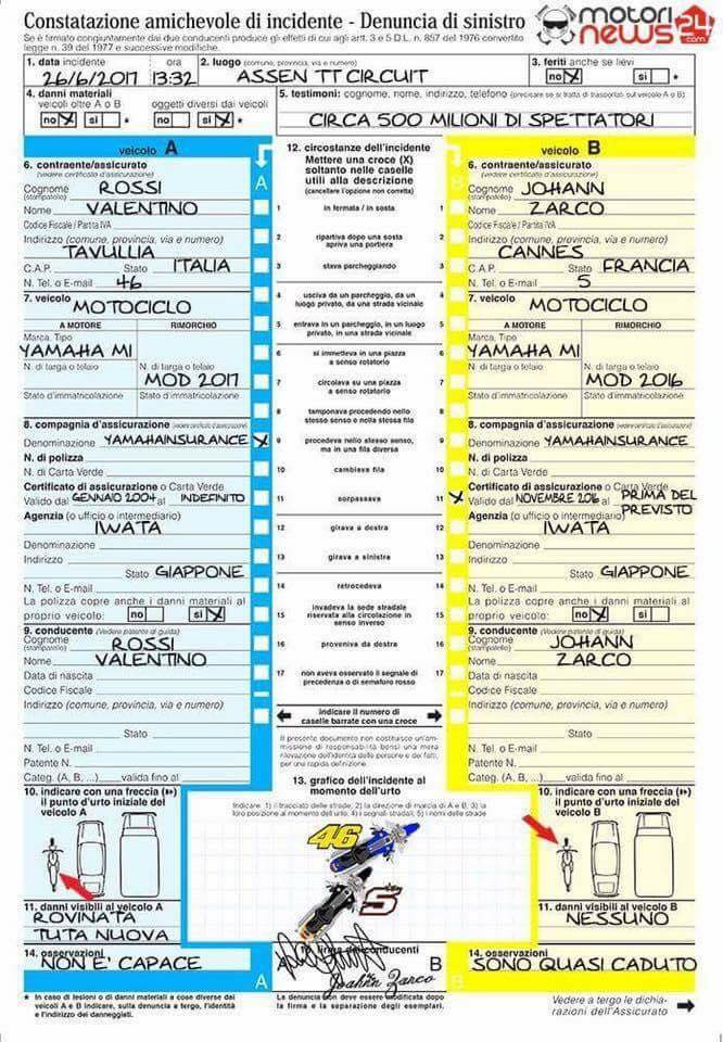 Moto GP Publié le 28 juin 2017 • 11:45 par Paddock GP #DutchGP : Rossi/Zarco… Humour ! Juste une touche d’humour… Source : Motori News 24
