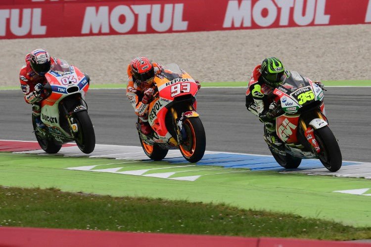 Puis sont arrivées les gouttes de pluie sur la visière. Ce qui a refroidi certains pilotes qui ont ralenti. Cal Crutchlow a fait partie de ceux qui sont restés sur le même rythme, maintenant ainsi leurs gommes à température. En quelques tours, les cinq secondes de retard sur le duo Márquez-Dovizioso ont été comblées : « au vu du rythme que j’avais, si j’étais parti avec le groupe de tête, c’est moi qui aurait dû gagner ce Grand Prix ! Mais bon, honnêtement, sans cette averse, je finissais seulement sixième ».
