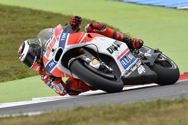 Le samedi matin, Lorenzo se classait deuxième des pilotes Ducati sur le mouillé, précédé uniquement d’Hector Barbera. C’était plutôt positif car il n’avait jamais piloté de Desmosedici sur le mouillé sur le Circuit van Drenthe. Sa huitième performance au général pouvait donc logiquement lui donner confiance pour la Q1, bien qu’il y soit opposé à des adversaires réputés sur piste humide et n’ayant rien à perdre, un peu comme Jack Miller ici-même en 2016.
