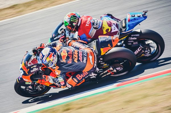 KTM a décidé de passer cette année à la vitesse supérieure en Grand Prix, après avoir remporté le titre de Champion du Monde Moto3 l’an dernier avec Brad Binder. Les débuts en MotoGP sont progressifs, et la firme autrichienne occupe actuellement la vingt-deuxième place ex-aequo du classement avec Pol Espargaro et Bradley Smith. Par contre en Moto2, Miguel Oliveira réalise des prodiges qui lui valent la quatrième position.