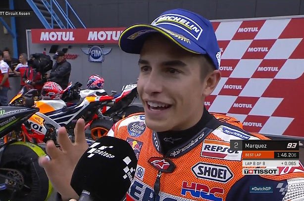 A peine descendu de sa Honda RC213V officielle après avoir réalisé le 2e temps de la qualification à Assen, Marc Marquez s’est exprimé au micro du site MotoGP.com.
