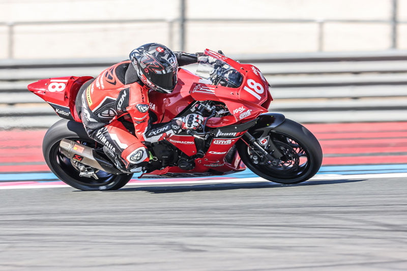 Auteur de la pole aux 24 Heures Motos puis aux 24H SPA EWC Motos pour le YART – Yamaha Official Team EWC, Karel Hanika a privé l’équipe à la BMW d’un triplé gagnant avec le meilleur temps dans la session des pilotes Rouges. Le Tchèque roulant en Bridgestone a tourné en 1’52”914, un tour de 0”044 plus rapide que ce qu’a pu obtenir Jérémy Guarnoni pour le BMW Motorrad World Endurance Team. Alan Techer a été le troisième plus véloce en 1’53”159 pour son retour chez F.C.C. TSR Honda France, et Florian Marino le quatrième en 1’53”190 pour Webike SRC Kawasaki France. On a assisté à de belles performances des revenants Sylvain Guintoli et Bastien Mackels qui ont manqué les manches de Suzuka et Spa-Francorchamps, respectivement, pour cause de blessure. Guintoli s’est montré le cinquième plus rapide sur le Suzuki n° 1 du Yoshimura SERT Motul, Mackels le septième sur la Kawasaki du TATI Team Beringer Racing. Cependant, le tour en 1’53”616 de Guintoli n’a pas été le plus rapide du trio de l’équipe qui mène le Championnat du monde d’Endurance de la FIM, cet honneur étant revenu à Gregg Black avec un 1’53”527 – le huitième meilleur temps – dans la session des pilotes Bleus (Kazuki Watanabe a pris la neuvième place pour l’équipe japonaise basée au Japon en 1’54”071 dans celle des Jaunes). Pour revenir aux pilotes Rouges, Steven Odendaal a été le sixième plus rapide d’entre eux pour Viltaïs Racing Igol, devant le double vainqueur du Bol d’Or qu’est David Checa (ERC Endurance-Ducati). Philipp Steinmayr a assuré que trois équipes Superstock différentes signent tour à tour le meilleur chrono, l’Autrichien le faisant pour le Team 18 Sapeurs Pompiers CMS Motostore. Par ailleurs, un accident de Charles Cortot au virage n° 7, sur la Suzuki du Junior Team LMS, a entraîné une interruption de la séance au drapeau rouge, le temps réparer les barrières de sécurité.