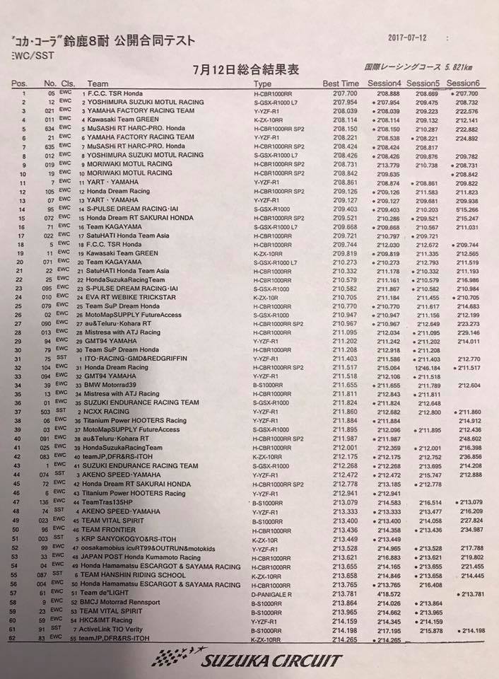 Ce matin, la Yamaha officielle (Yamaha Factory Racing Team (Yamaha YZF R1 #21, Katsuyuki Nakasuga, Alex Lowes, Michael van der Mark) prenait la tête du groupe A en plaçant un 2’08.039 devant la Kawaski du team Green (Kawasaki ZX-10RR #11, Kazuma Watanabe, Leon Haslam, Azlan Shah bin Kamaruzaman) et la Honda officielle MuSASHi RT HARC-PRO Honda (Honda CBR 1000RR SP2 #634, Takumi Takahashi, Takaaki Nakagami, Jack Miller).