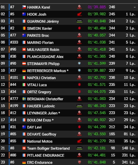 Évidemment, tous ces écarts varient au gré des ravitaillements alors que l’on notera la belle performance de la Yamaha #77 du Wójcik Racing Team, en lutte avec le SERT.