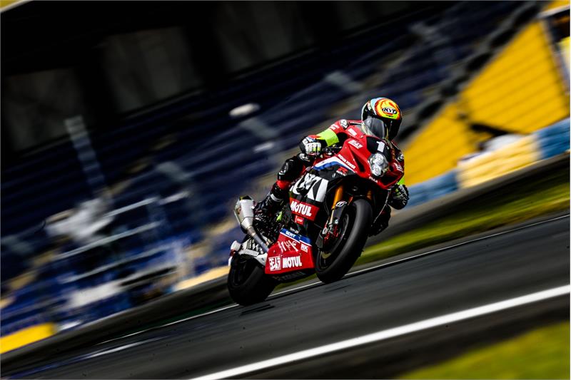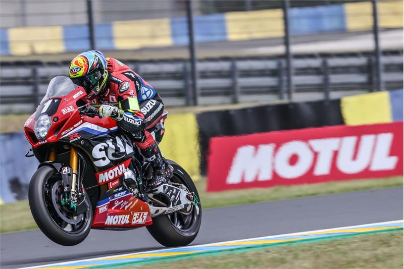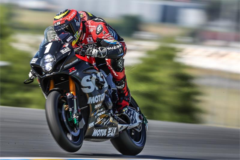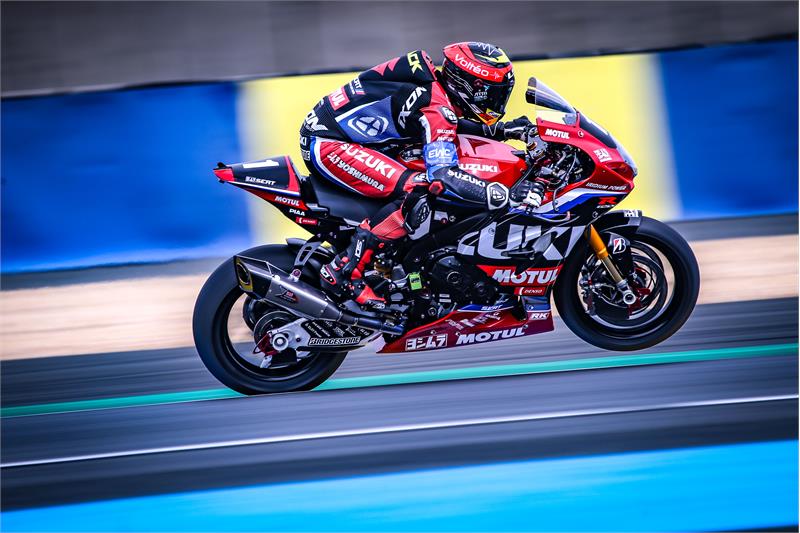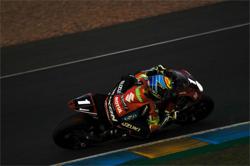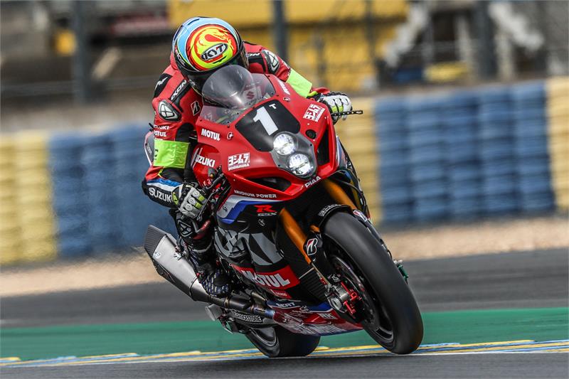 Les pilotes de l’équipe Gregg Black, Sylvain Guintoli, Xavier Siméon et Kazuki Watanabe ont fait tourner la GSX-R1000R sur le circuit Bugatti en 1’36.429, une minuscule avance sur YART et BMW Motorrad sur les temps combinés après quatre séances.