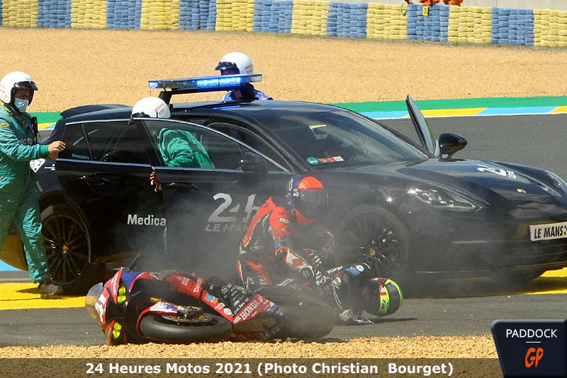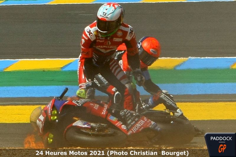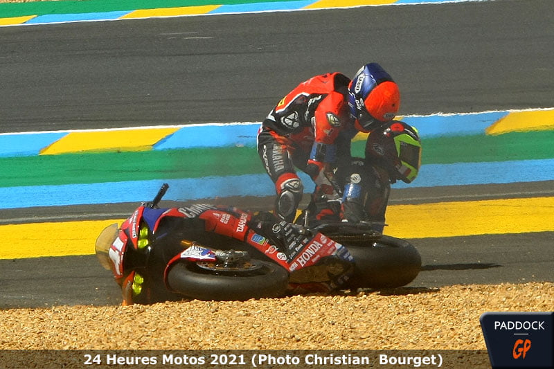 Impliqué dans cette chute de trois motos dans la courbe Dunlop, Hugo Clere a fait parler l’entraide, le courage et la solidarité avant la rivalité et la course.