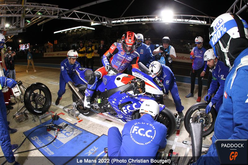 Pour la Honda #5, à la nuit tombée, cela a été plus ennuyeux car un problème supposé de shifter puis de pot d’échappement ont nécessité deux passages imprévus au box, laissant une dizaine de minutes dans l’opération.