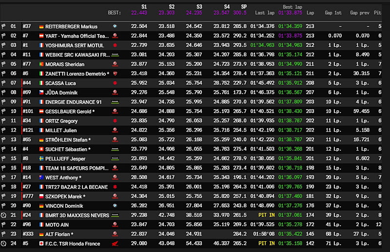 Pire, les deux motos se sont battues à coup de dixièmes tout au long de ces 6 heures, s’échangeant alternativement un meilleur tour en course arraché par Marvin Fritz en 1’33.875 lors de son 212e passage dans le dernier tour !