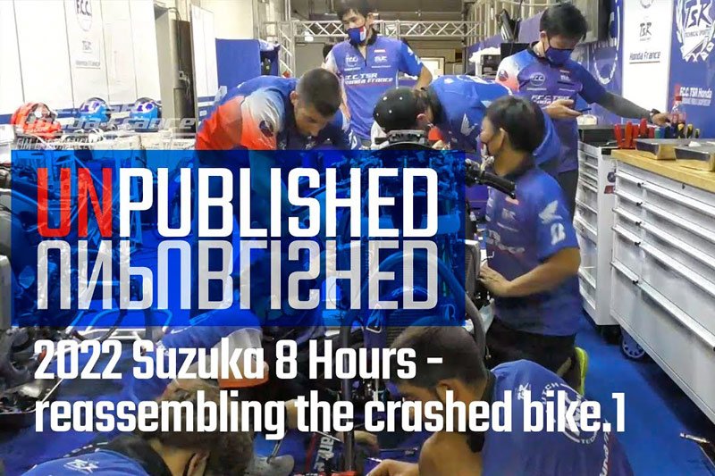 Après le terrible crash qui a failli être fatal à Gino Rea lors des essais libres des 8 Heures de Suzuka 2022, l’équipe F.C.C. TSR Honda France a filmé la reconstruction de la CBR1000RR-R numéro 5 la journée et la nuit précédant la course.