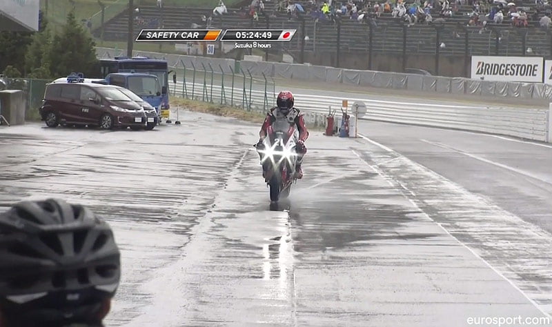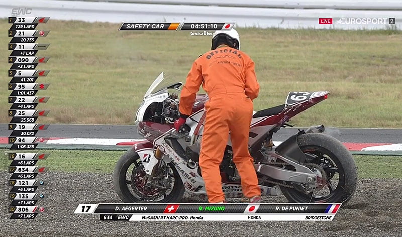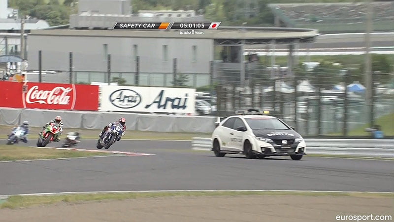 Fait important, la Kawasaki #11 se trouve derrière la même Safety Car que les 2 leaders, mais à un tour.