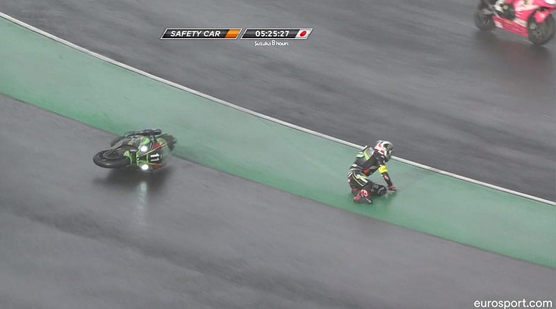 Les conditions ne améliorent pas et la Yamaha #21 fait de même quelques instants plus tard, juste avant que Jonathan Rea chute au ralenti, sous voiture de sécurité !