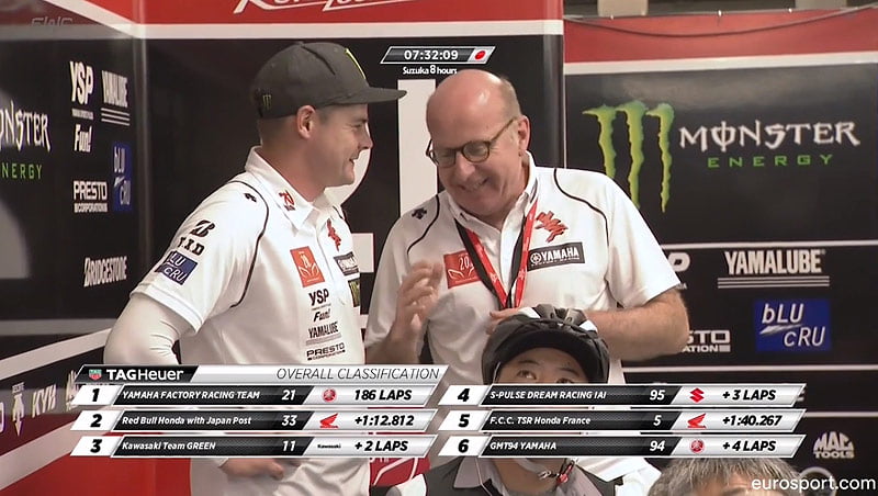 Sauf fait de course, la victoire semble donc en vue pour Alex Lowes et Michael van der Mark, sous l’œil d’Eric de Seynes, et ce sans l’apport de Katsuyuki Nakasuga blessé lors des essais libres.