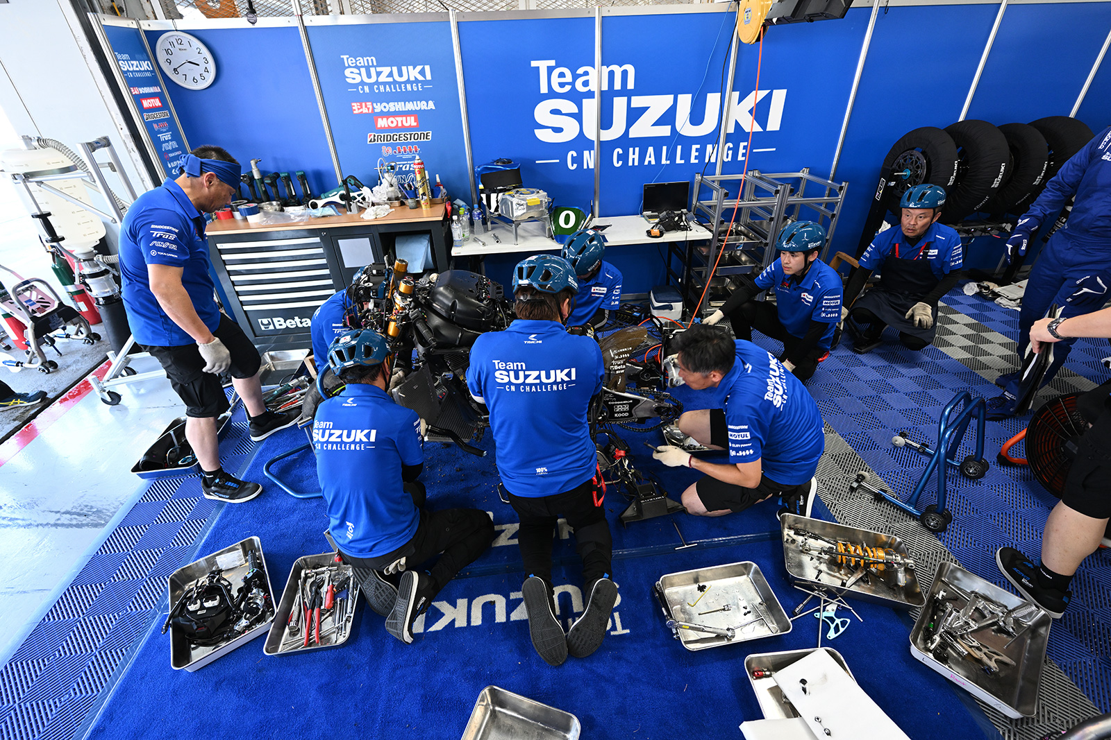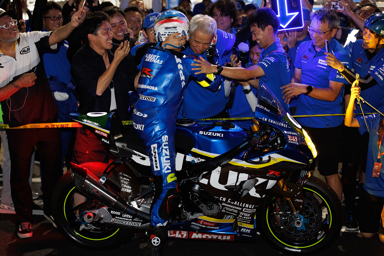 En fait, pour l’équipe Yoshimura SERT Motul, le premier adversaire était d’abord cette année la machine sœur du CN Challenge, passée clairement du stade d’expérimentation folklorique à une prétendante au podium, grâce à toute l’équipe de Shinichi Sahara, l’ex-chef de projet de la firme d’Hamamatsu en MotoGP. Née à des fins écologiques, la GSXX-R1000R est dorénavant compétitive, emmenée par Etienne Masson, Albert Arenas et Takuya Tsuda.
