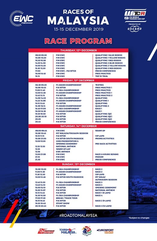 Après le Bol d’Or, les concurrents du Championnat du Monde d’endurance sont en Malaisie où vont avoir lieu pour la première fois ce samedi les 8 Heures de Sepang. Afin d’assurer le succès populaire de cette nouvelle manifestation, les organisateurs ont ajouté des courses automobiles du WTCR en alternance avec le roulage des motos.