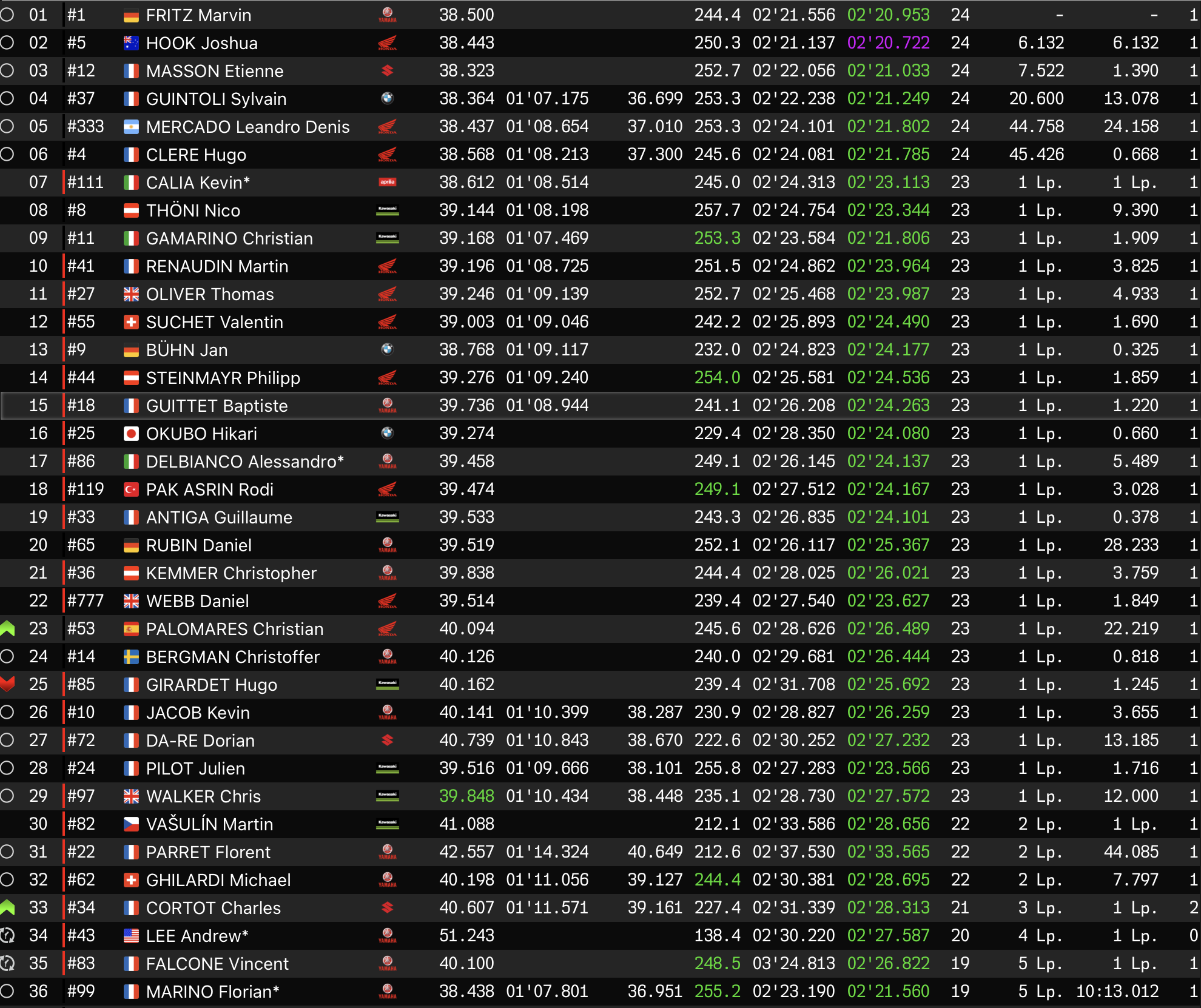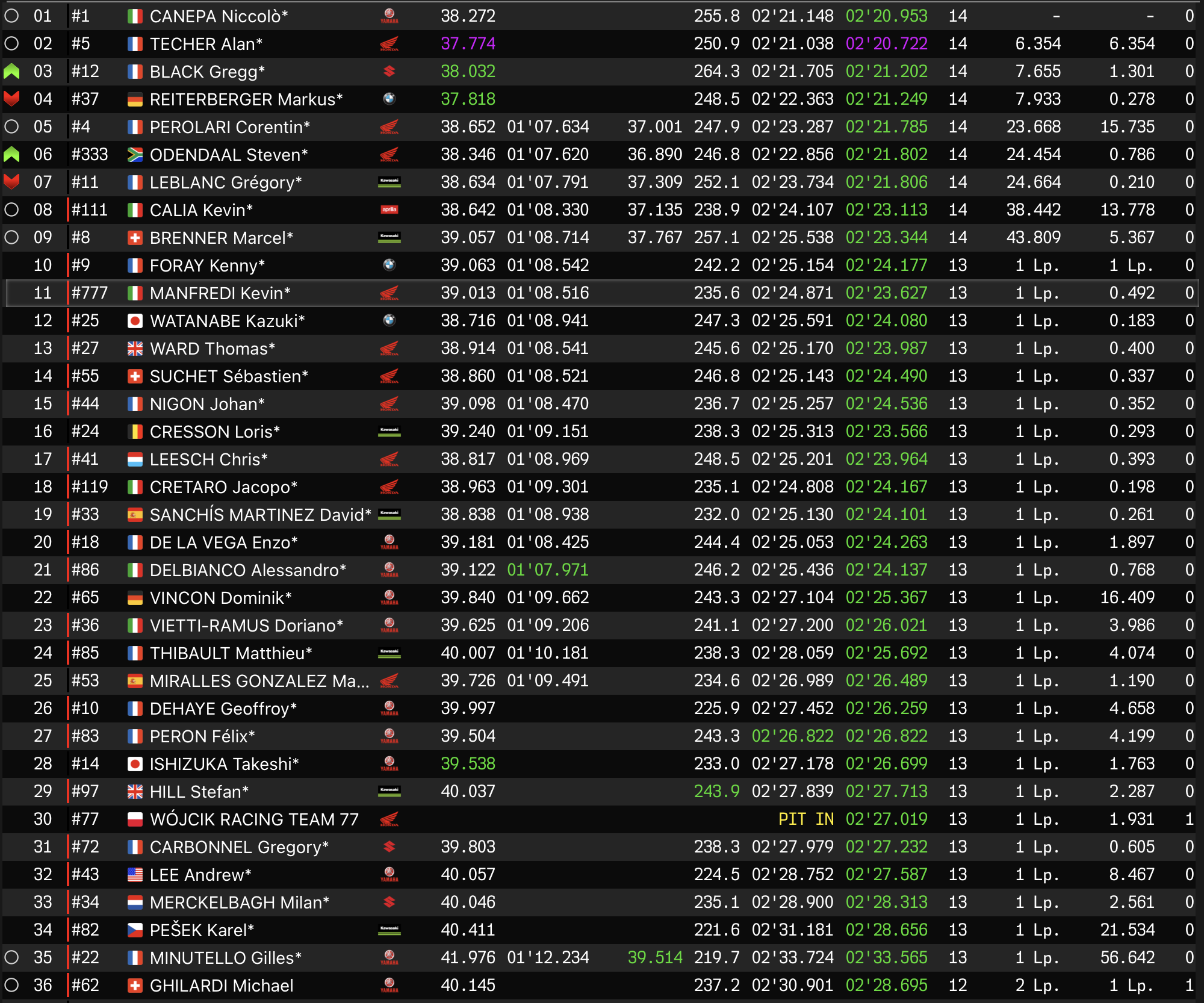 La n°1 n’a pas été inquiétée au départ. Emmenée par Niccolo Canepa, Yart Yamaha a abordé le raidillon en tête, et a progressivement grappillé des dixièmes sur ses poursuivants pour mener l’épreuve avec trois secondes d’avance après 30 minutes de roulage.