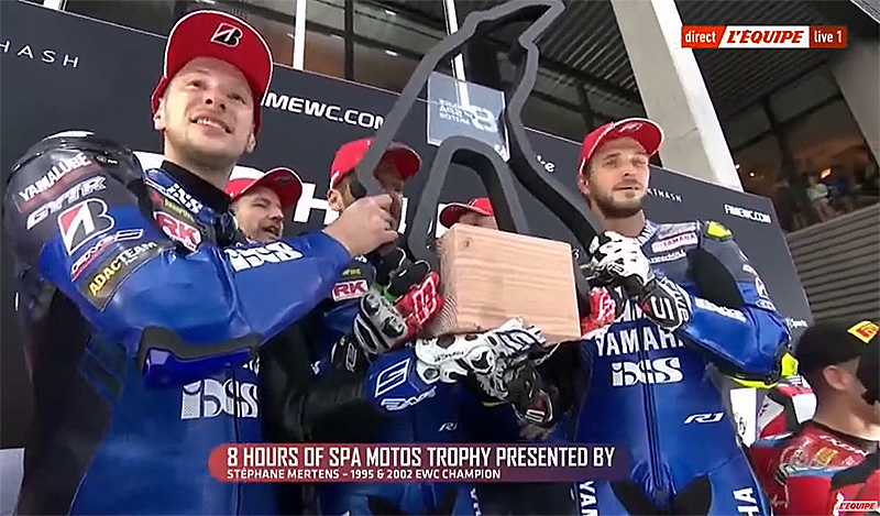 Malgré une forte opposition menée tout du long principalement par la Suzuki #12 du Yoshimura SERT Motul, la moto championne du monde et son équipage ont su répondre coup pour coup à toute tentative de mise en cause, s’assurant, malgré un ravitaillement supplémentaire, un petit capital de 40 secondes d’avance à l’issue des 201 tours parcourus sur le circuit belge de Spa-Francorchamps.
