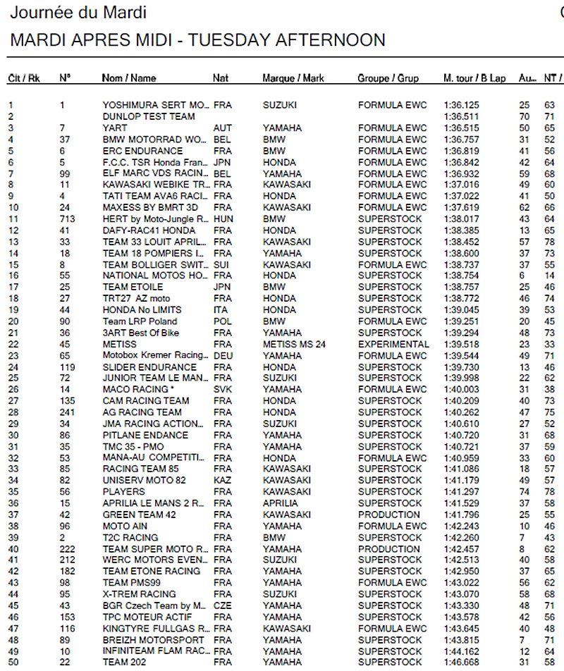 Bien que les essais de pré-saison ne soient pas nécessairement un guide de forme vraiment précis, les temps réalisés lors des deux jours du Pré-Test sur le circuit du Mans commencent à dessiner une hiérarchie en vue des 24 Heures Motos, qui se dérouleront le week-end du 19 et 20 avril.