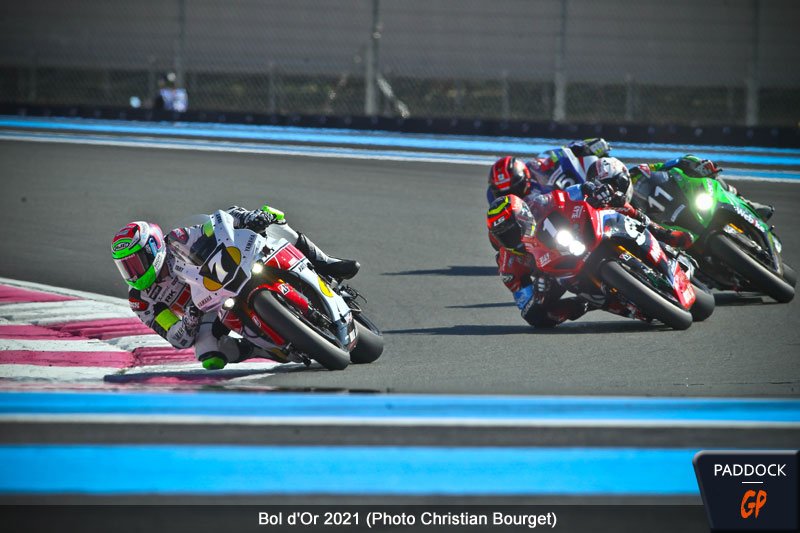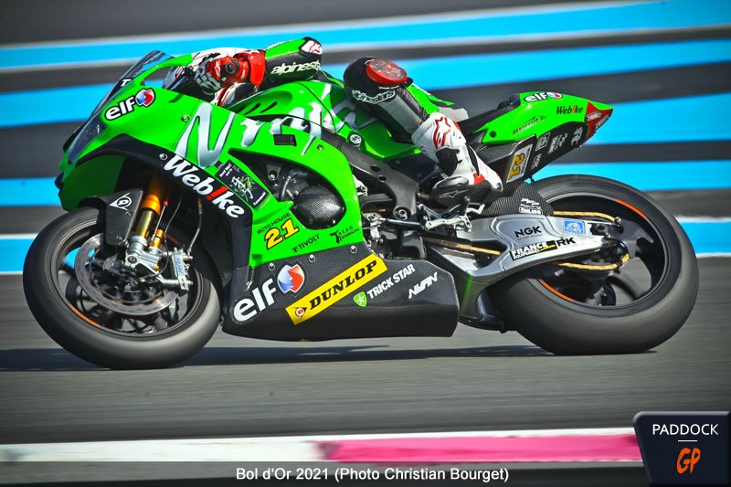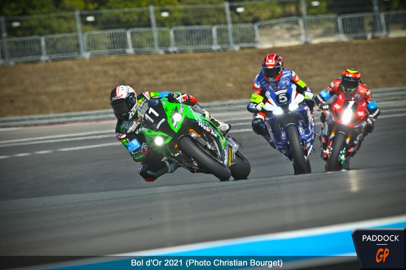 Valentin Suchet (Suzuki GSXR-1000 #72) est le premier à chuter, peu après l’entame de course. Gilles Stafler, président du team Webike SRC Kawasaki France Trickstar, se confie sur le début de course impressionnant de son pilote : « Nous savions que nous serions bons en course. Nous n’avons pas changé notre jeu, Jérémy roule selon le tableau de marche, le rythme est tout à fait normal. »