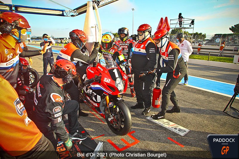 Le Bol d’Or 2021 se poursuit au Castellet. Les pilotes se sont calmés, la piste s’est gommée et les équipes « entrent dans le dur » ! Bien entendu, la course s’est considérablement calmée depuis la première heure folle. Yoshimura SERT Motul trône en tête, juste devant le YART – Yamaha Official Team EWC et Webike SRC Kawasaki France Trickstar.