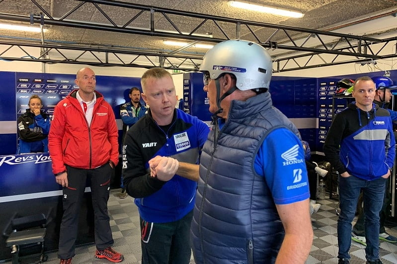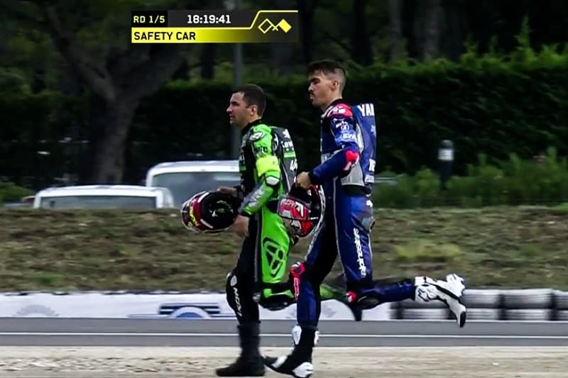 L’équipe FCC TSR Honda France se rendait dans les stands de YART et SRC Kawasaki pour offrir ses excuses, manifester sa solidarité et prendre des nouvelles d’Erwan Nigon et Loris Baz, heureusement indemnes.