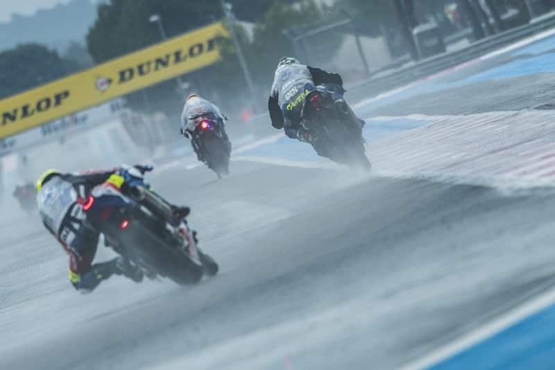 « Suite à une forte averse orageuse sur le circuit du Castellet et pour la sécurité des pilotes engagés, la direction de course a décidé de suspendre la course au Bol d’Or à 18 h, trois heures après le départ. »