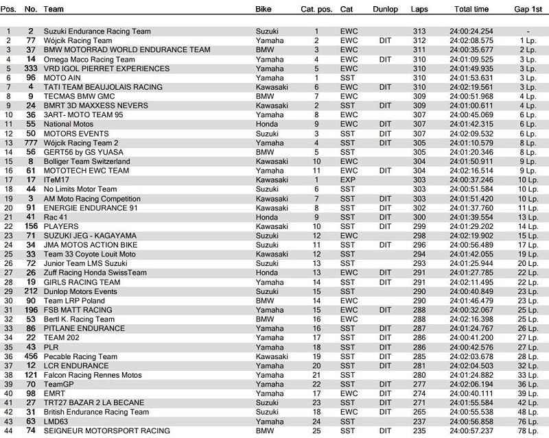 « Modification du podium d’arrivée du Bol d’Or. Le Suzuki Endurance Racing Team reste le vainqueur de l’épreuve devant le Wójcik Racing Team, mais le Team ERC Endurance, arrivé troisième, est déclassé. »