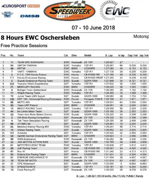 Poursuivi cette saison par des soucis récurrents de freinage sur sa nouvelle GSX-R 1000, le Suzuki Endurance Racing Team va tenter de remonter sur le podium avec Vincent Philippe, Etienne Masson et Gregg Black. Autre équipe de pointe capable d’un coup d’éclat en Allemagne après une saison difficile, le Team SRC Kawasaki confie cette mission à Mathieu Gines, Randy de Puniet et Jérémy Guarnoni. Les couleurs Kawasaki seront aussi défendues par le Bolliger Team Switzerland qui a terminé 4e l’an dernier aux 8 Hours of Oschersleben.
