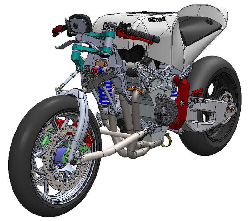 Leur toute nouvelle version, est conçue autour du concept de départ imaginé par le regretté Jean Bertrand Bruneau, et dessinée par Thomas Hémery. Elle est réalisée autour d’un moteur porteur Suzuki, et d’une partie cycle composée d’éléments démontables. Ces pièces de châssis dessinées et fabriquées en interne sont quasiment toutes taillées dans la masse, en aluminium, y compris les roues avant.