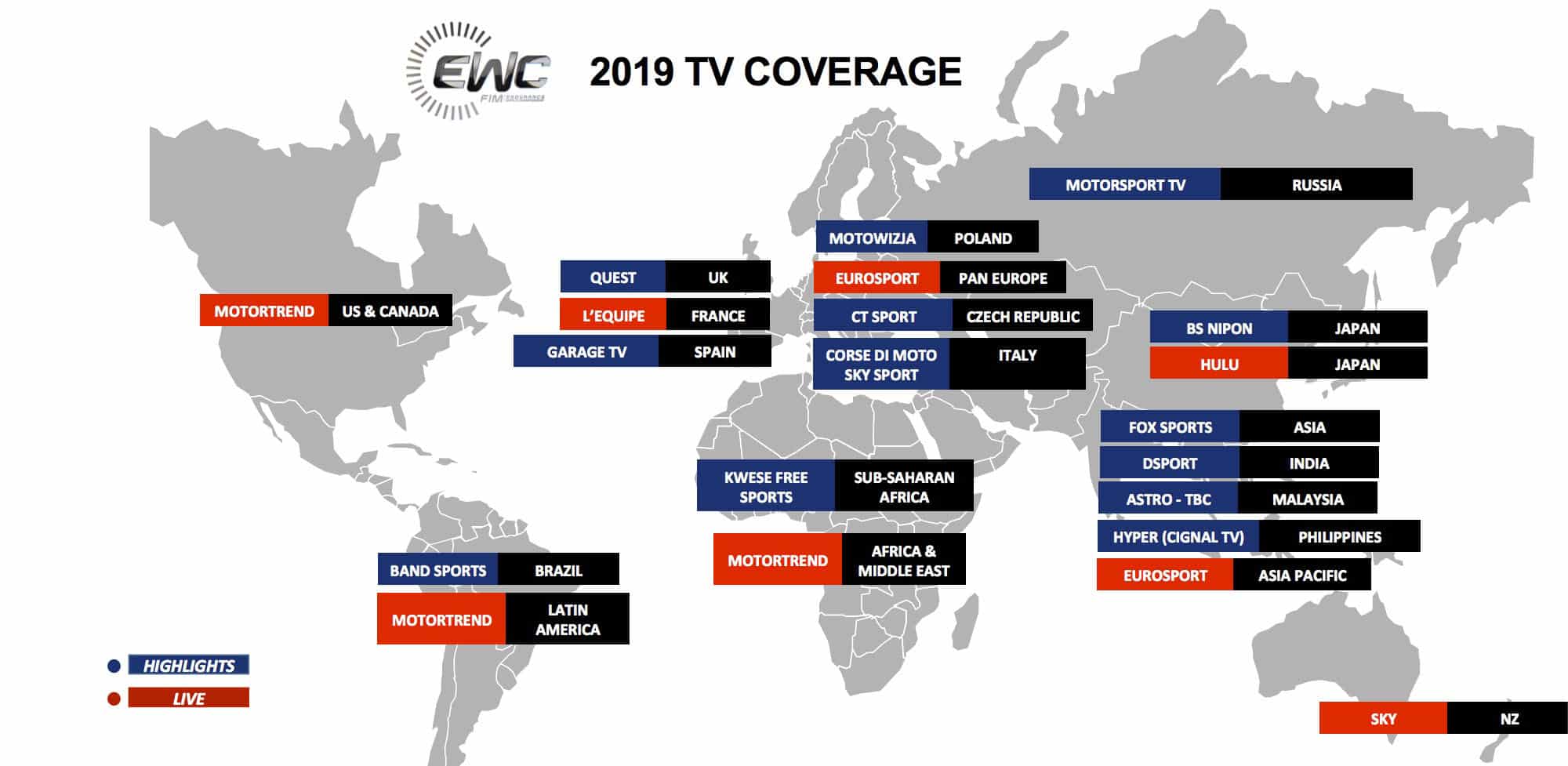 Eurosport Events, promoteur du FIM EWC, distribue désormais les courses Championnat du Monde FIM d’Endurance auprès de plus de vingt diffuseurs dans le monde entier et, pour la France, les Suzuka 8 Hours seront à vivre en direct et en intégralité sur Eurosport 2 de 4 h 15 à 13 h ainsi que sur Eurosport Player avec des commentaires anglais et français.
