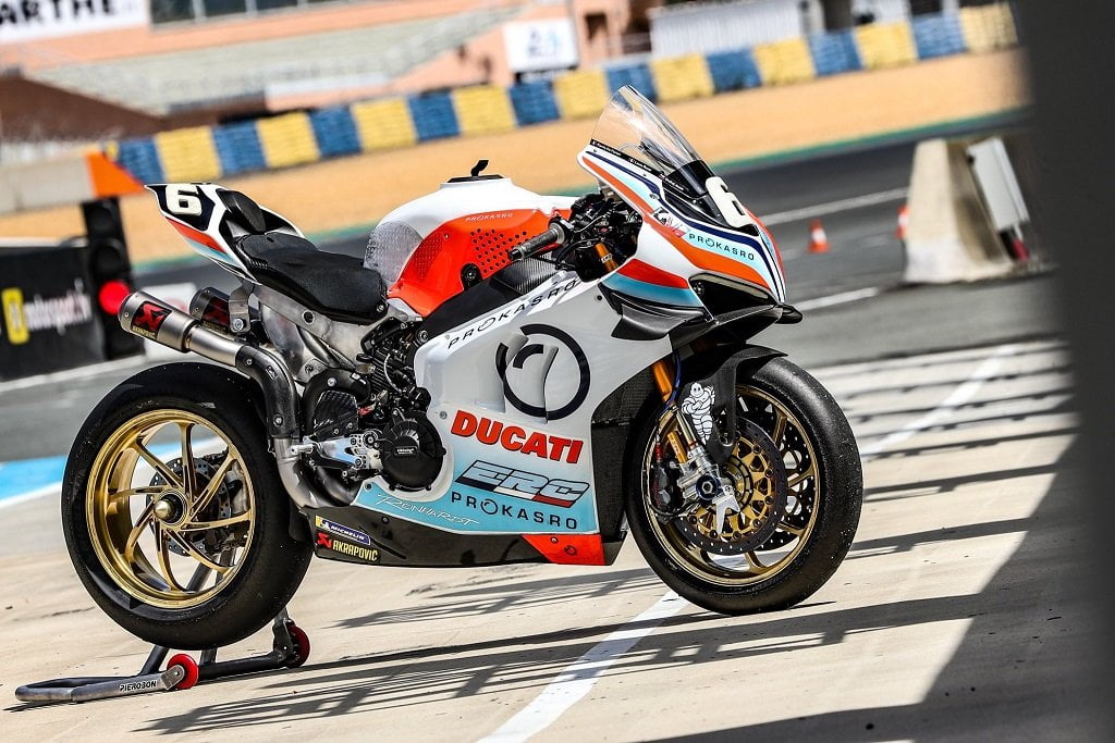 Etienne Masson, qui a participé aux deux journées de tests 24 Heures Motos au Mans fin mars, avoue être très satisfait de ses premiers tours de roues sur la Panigale V4R du team ERC Endurance-Ducati : « J’ai vraiment été surpris par la facilité de la machine. Elle est hyper maniable, tu sens tout de suite que c’est une moto née pour la course. Je retrouve un peu des sensations que j’avais avec la Suzuki. Il ne faut pas rouler en attaquant mais plus intelligemment, il faut enrouler. C’est une moto qui permet de rouler vite sans être trop physique, cela correspond bien à notre discipline. Il nous manque encore un peu de performance mais la moto est encore jeune et conçue pour la vitesse. L’équipe travaille pour l’adapter à l’Endurance. On travaille aussi beaucoup pour la course avec des pneus Michelin qui peuvent faire deux relais facilement et qui sont aussi efficaces sur piste plus délicate. »
