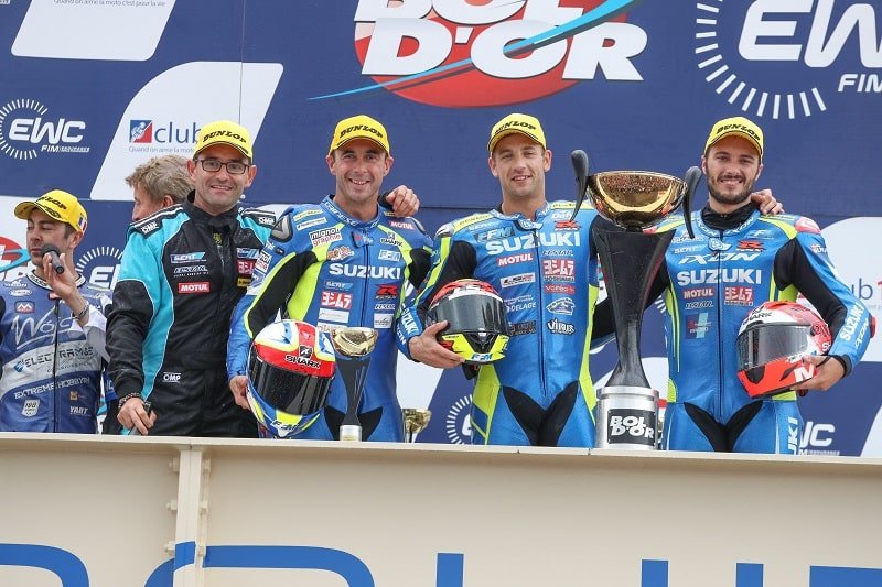 Nouveau team manager du légendaire et mythique Suzuki Endurance Racing Team, Damien Saulnier a magnifiquement remporté avec Gregg Black, Étienne Masson, Vincent Philippe et toute son équipe (dont Dominique Méliand) une splendide victoire pour sa tentative inaugurale à ce niveau.