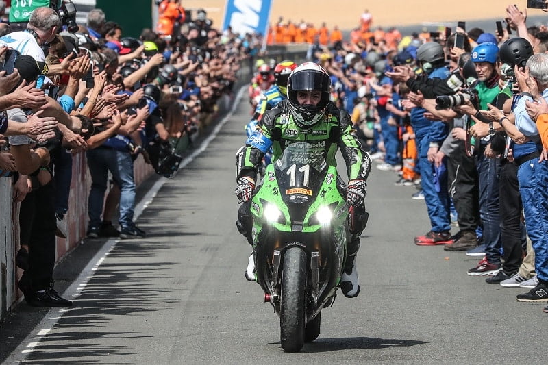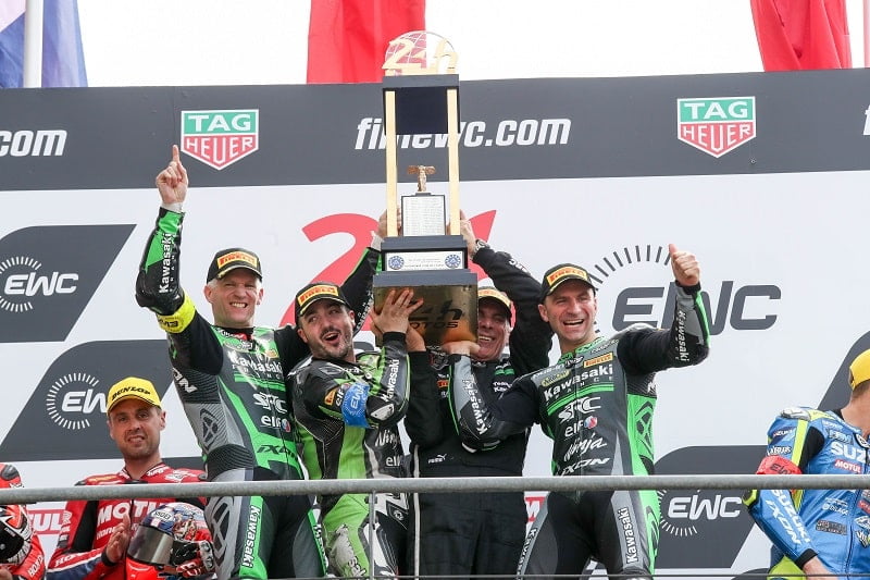 Les 24 Heures qui viennent de se dérouler le week-end dernier ont par contre été un triomphe pour Kawasaki qui a remporté sur le circuit Bugatti la 14ème victoire de son histoire, un magnifique record ! Jérémy Guarnoni, Erwan Nigon et David Checa ont été impériaux pendant les deux tours d’horloge, même si les circonstances ne furent pas toujours idéales.
