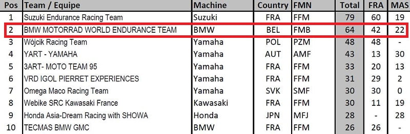 Le BMW Motorrad World Endurance Team a réalisé un très bon début de saison en terminant deux fois à la troisième place pour monter sur le podium lors des deux premières courses, au Bol d’Or ainsi qu’aux 8 Heures de Sepang. Cela place l’équipe en deuxième position du classement du Championnat du Monde avec 64 points, contre 79 pour le Suzuki Endurance Racing team leader. La S 1000 RR sera ce week-end l’adversaire n°1 du SERT dans la Sarthe, avec comme pilotes Kenny Foray (France), Ilya Mikhalchik (Ukraine) et Markus Reiterberger (Allemagne).