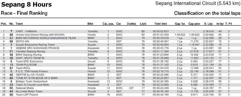 « C’est une question qui est un peu délicate, car avec tout ce qui s’est passé lors des premières courses, que ce soit au Bol d’Or ou aux 8 Heures de Sepang, on n’a jamais pu disputer 100% des épreuves, surtout au Bol d’Or à vrai dire car c’est celle-là qui nous intéressait le plus en raison de sa durée. »