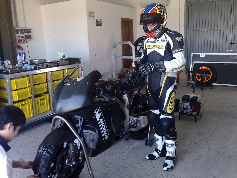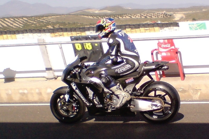 « J’ai fait les premiers tests à Almeria, et je m’en rappellerai toute ma vie. Okada avait roulé, et tout de suite j’ai été plus rapide… et surtout sans tomber ! C’était ça le défi, car cette moto coûtait cher. Ce qui m’avait surpris à l’époque, ce n’était pas le moteur, mais les freins carbone. »