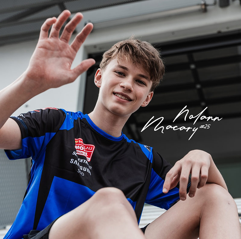 “Alors ce qu’il a fait, c’est qu’il a été champion de France en 250 NSF dès sa première année. Donc ça c’était une très bonne chose. Il a fait quelques wildcards en European Talent Cup. Alors celle qui était la plus marquante, c’était à Magny-Cours parce qu’il s’est très bien débrouillé. Il n’avait pas beaucoup d’expérience donc ça a été un peu compliqué, et à la fin il s’est fait mal en plus. Il est tombé, il s’est fait mal parce qu’on se rappelle des conditions à Magny-Cours : elles étaient dantesques ! Et après, malheureusement, il devait faire les dernières courses en Espagne, mais il s’est blessé et il n’a pas pu les faire. Mais normalement, il devrait être l’année prochaine en ETC, et il devrait continuer à faire quelques wildcards en FSBK avec nous pour le former un maximum, pour qu’il soit le plus fort possible.”