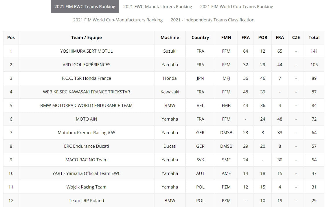 Les deux séances qualificatives des 6 Hours of Most auront lieu jeudi 7 octobre. Après une journée réservée au WTCR vendredi, la course finale du FIM EWC se disputera samedi 9 octobre de 11 h à 17 h CEST. L’équipe championne du monde FIM EWC 2021 pourra alors être célébrée et récompensée.