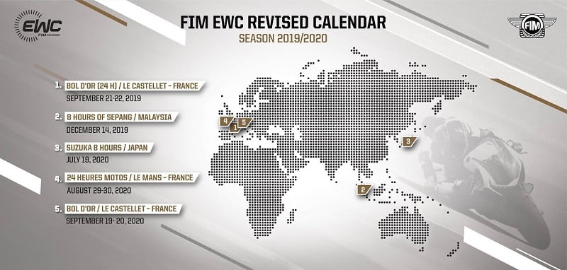 Eurosport Events, promoteur du championnat, en accord avec la FIM – Fédération Internationale de Motocyclisme, a remanié le calendrier FIM EWC en tenant compte des restrictions gouvernementales en mesure.
