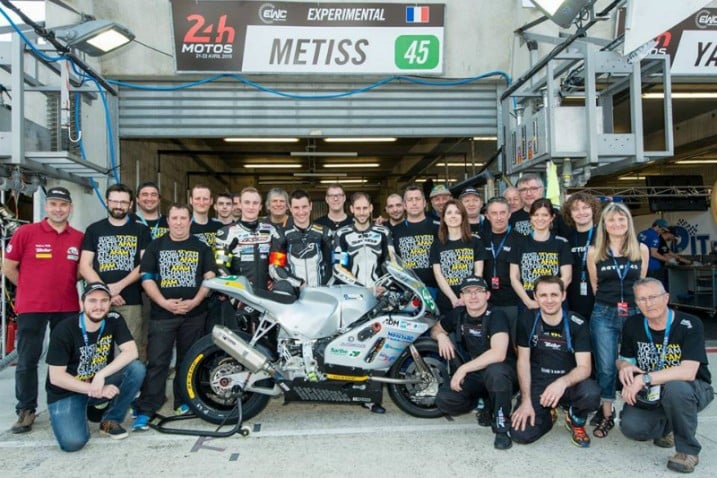 RÉSULTATS PRESTIGIEUX – En plus des particularités techniques qui ont fait parler d’elle, la Metiss a gagné sur le terrain le respect de ses adversaires. Le projet « Open » a été lancé en 2006 après des débuts en 2003 (le regretté Anthony Delhalle a également été de la partie en 2004-2005 à Oschersleben), et la moto française expérimentale a obtenu des résultats respectables : 7 fois dans le top 10 au Bol d’Or (6ème en 2003 et 2004, 10ème en 2005, 8ème en 2006, 7ème en 2010, 7ème en 2010, 9ème en 2011 et 2014), 3 fois en 17 participations aux 24 Heures du Mans (7ème en 2003, 8ème en 2005, 10ème en 2010). Des performances qui ont même intrigué un génie de la technique comme Guy Coulon, qui s’est présenté au Pré-Test du Bol d’Or 2016 pour suivre l’évolution du projet depuis le box Metiss.