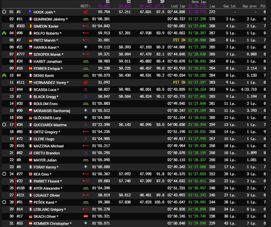 Les deux pilotes sont abattus mais, fort heureusement, ne sont pas blessés. La Safety Car est sortie pendant que l’on nettoyait la piste.