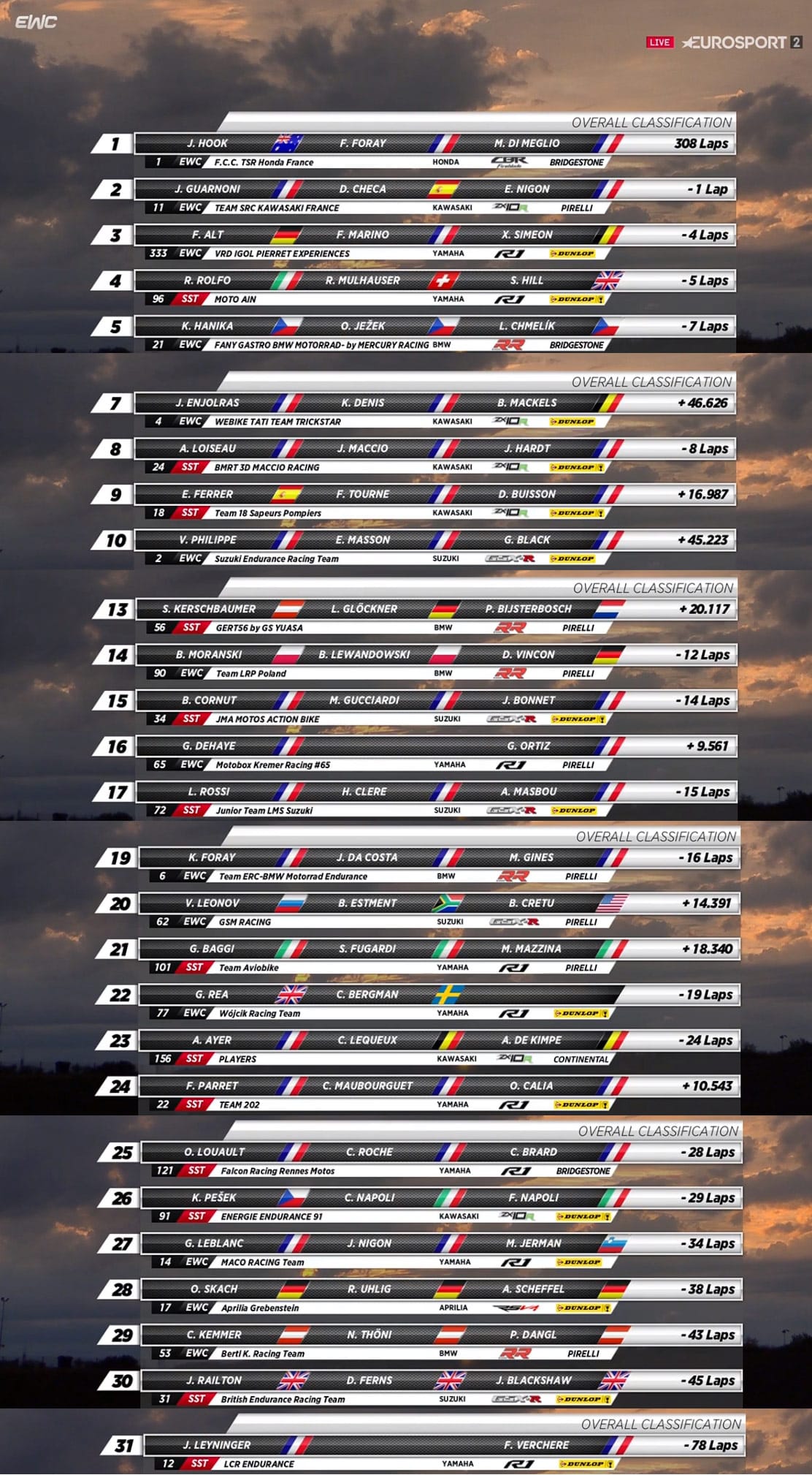 Rajoutons que le team Moto Ain remporte la Coupe du Monde d’Endurance Superstock.