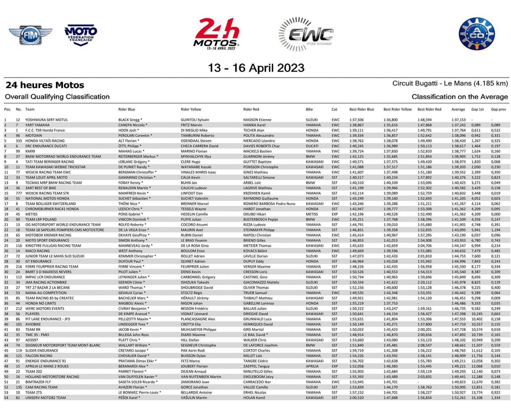 Celui qui a tout le potentiel pour viser la pole sur piste sèche est certainement le YART Yamaha. Après une saison 2022 douloureuse, la R1 #7 est provisoirement deuxième avec Niccolò Canepa (vainqueur des 24h Motos en 2017) flanqué une nouvelle fois de Marvin Fritz et Karel Hanika. Viennent ensuite les champions du monde en titre sur la F.C.C. TSR Honda France la troisième place avec la CBR1000RR-R #1 renouvelée sur de nombreux aspects (bras oscillant et silencieux d’échappement en premier), comptant Mike Di Meglio, Josh Hook et Alan Techer dans l’équipe.