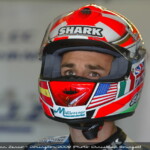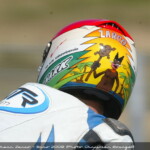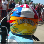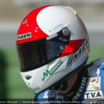 Ensuite, sur les premières versions, il y avait beaucoup de drapeaux sur les côtés du casque, dans le même esprit; cet esprit  « respect à chaque pilote, à chaque drapeau qui représentait une nationalité », que ce soit la Finlande pour Saarinen, l’Australie pour Stoner et Doohan. Donc beaucoup de drapeaux mais, avec le temps , j’ai commencé à avoir ma propre image, donc on s’est dit qu’il n’y avait plus besoin de montrer ce respect aux pilotes car « je suis maintenant le pilote » et j’ai mis en avant le drapeau français, pour notre nation, et le drapeau hongrois pour se rappeler que c’est avec Gabor Talmacsi que j’ai pu commencer les Grands Prix, parce que j’ai été en Hongrie, via la femme de Laurent qui est hongroise, et c’est comme ça qu’on a pu avoir les premières portes ouvertes en Grand Prix, et donc, on ne l’oublie pas et on garde la Hongrie dans notre cœur.
