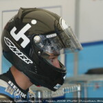 Et puis l’arrière de mon casque, au début il y avait un « Tchin Tchin »; c’était comme une représentation du Fan Club. Puis, c’était un  » Tchin Tchin  » en couches-culottes. Lorsque j’ai eu un podium, on a enlevé la couche-culotte et  » Tchin Tchin  » est devenu adulte . Et maintenant qu’on a vraiment cette association ZF Grand Prix, j’ai souhaité mettre une photo de Laurent et moi, pour bien annoncer aux gens que l’aventure, c’est à deux, « Tu prends Zarco, tu prends Fellon » car c’est à deux que nous fonctionnons; lui a les idées, moi je fonce, et on avance très bien ainsi. »