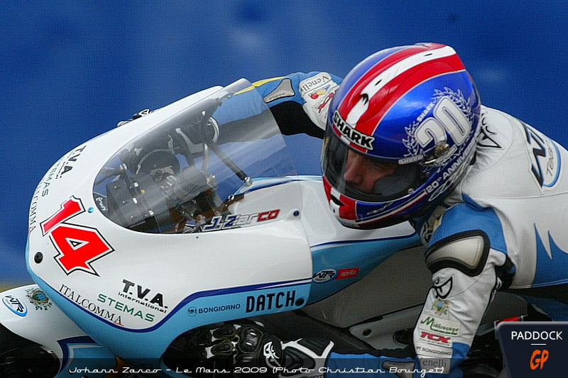 Et puis l’arrière de mon casque, au début il y avait un « Tchin Tchin »; c’était comme une représentation du Fan Club. Puis, c’était un  » Tchin Tchin  » en couches-culottes. Lorsque j’ai eu un podium, on a enlevé la couche-culotte et  » Tchin Tchin  » est devenu adulte . Et maintenant qu’on a vraiment cette association ZF Grand Prix, j’ai souhaité mettre une photo de Laurent et moi, pour bien annoncer aux gens que l’aventure, c’est à deux, « Tu prends Zarco, tu prends Fellon » car c’est à deux que nous fonctionnons; lui a les idées, moi je fonce, et on avance très bien ainsi. »