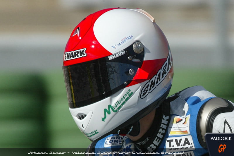 Johann Zarco: « La décoration du casque, ça avait commencé avec ce soleil levant, ce joli soleil qui représente les pilotes japonais de l’ère des années 90, quand Laurent travaillait sur les Grands Prix, quand Ueda, Sakata, Wakai et beaucoup de Japonais sont arrivés et ont fait des performances incroyables. C’était un clin d’œil à ces Japonais et cet esprit japonais qui était alors « Je fonce ». Puis, on s’est également rendu compte que ça se voyait très bien à la télé, donc on s’est dit « pourquoi pas le garder? ».