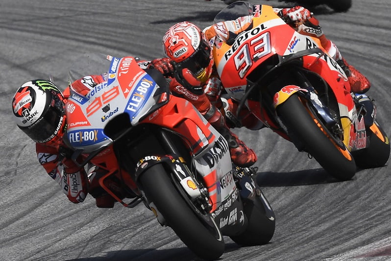 Dovizioso et Lorenzo ont prouvé qu’on peut le battre, car ils l’ont fait plus d’une fois. Il est bien évidemment un pilote extrêmement fort et en est conscient. C’est la même chose pour Dovizioso et Lorenzo, la différence se fait donc par les évènements, course après course.