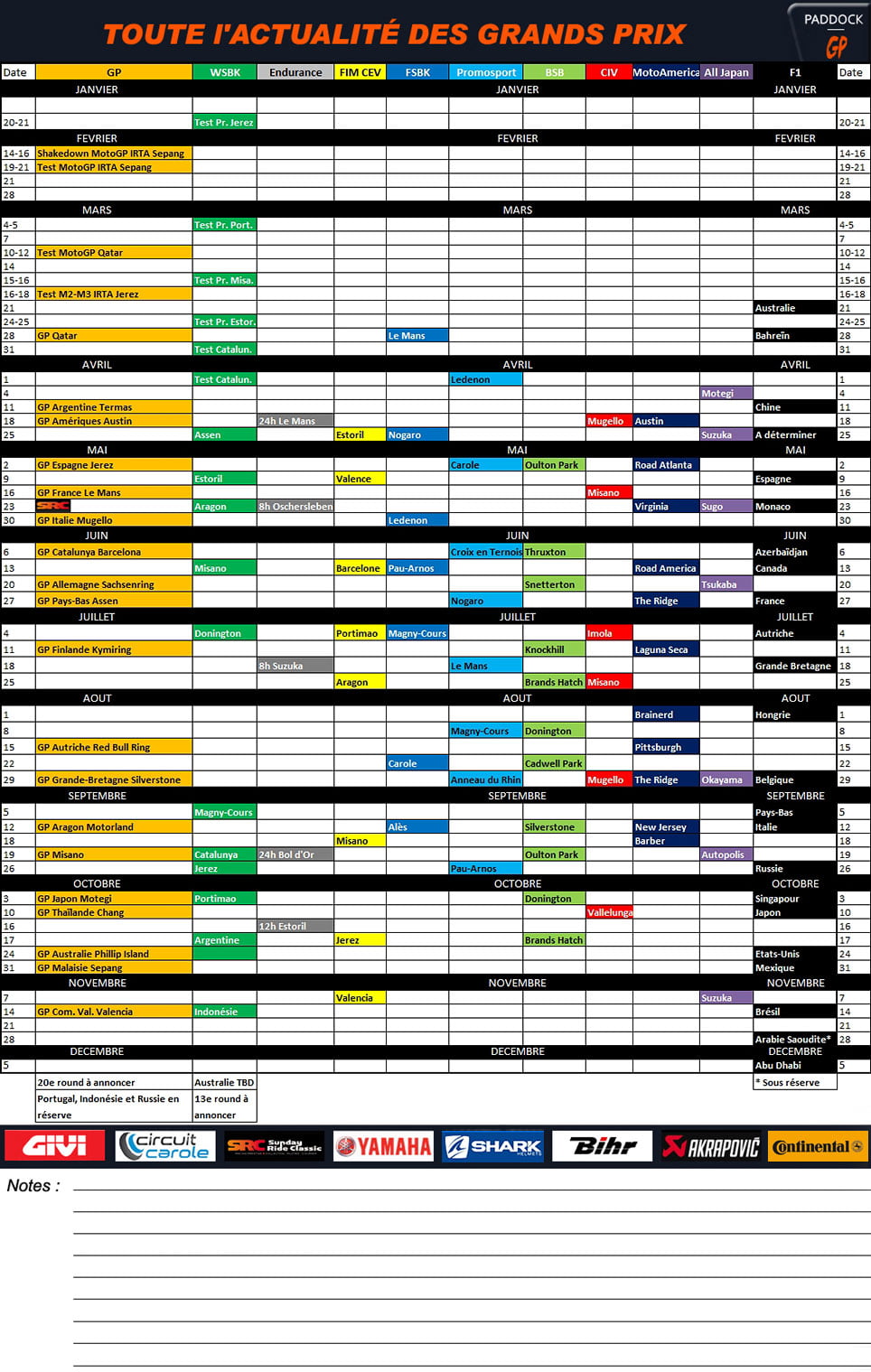 – Le premier Grand Prix aura lieu du 26 au 28 mars au Qatar.